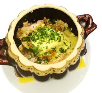 Картофель, шампиньоны, сыр, горбуша, лук-репка, морковь
