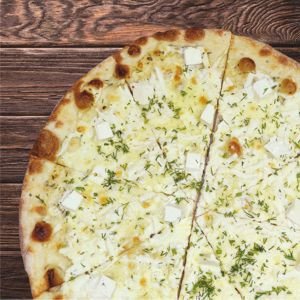 Сыр моцарелла, фирменный соус белый, сыр брынза, сыр пармезан, зелень свежая